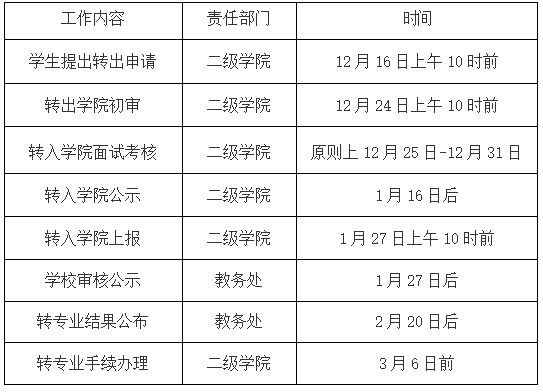 根据学校工作安排,依据我校《本科学生转专业管理暂行规定》及相关文件精神,现将本学期转专业工作相关事宜通知如下: