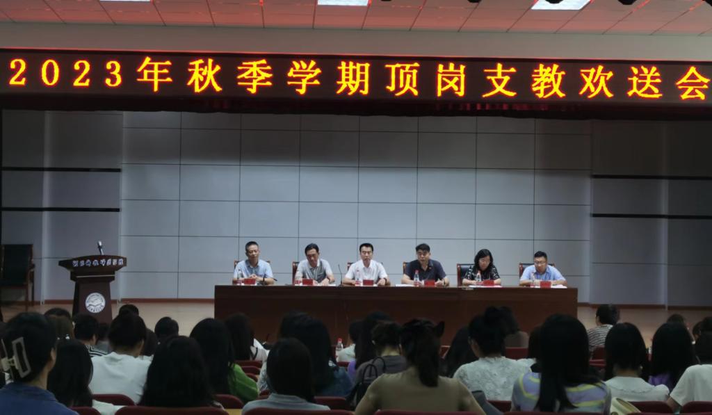 9月5日下午,我校在秦皇岛校区组织召开了2023年秋委学期 “顶岗支教”工作动员暨欢送会。海港区教育和体育局相关领导,校党委常委副校长刘荣昌、教务处、学生处以及相关院(系)负责人出席会议。海港区中小学领导及教师代表、我校顶岗支教的学生参加了会议。