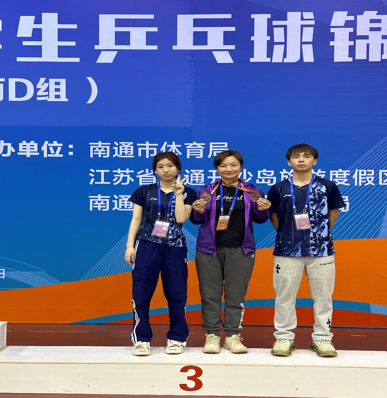 另讯,在4月11日刚结束的第26届全国大学生乒乓球锦标赛丙C组的比赛中,来自我校运动训练专业2021级的李佳静和2022级的刘明杰混双组合,不畏强手,顽强拼搏,一路过关斩将最终获得铜牌,实现了我校乒乓球队在校学生在全国大学生乒乓球锦标赛奖牌榜零的突破。