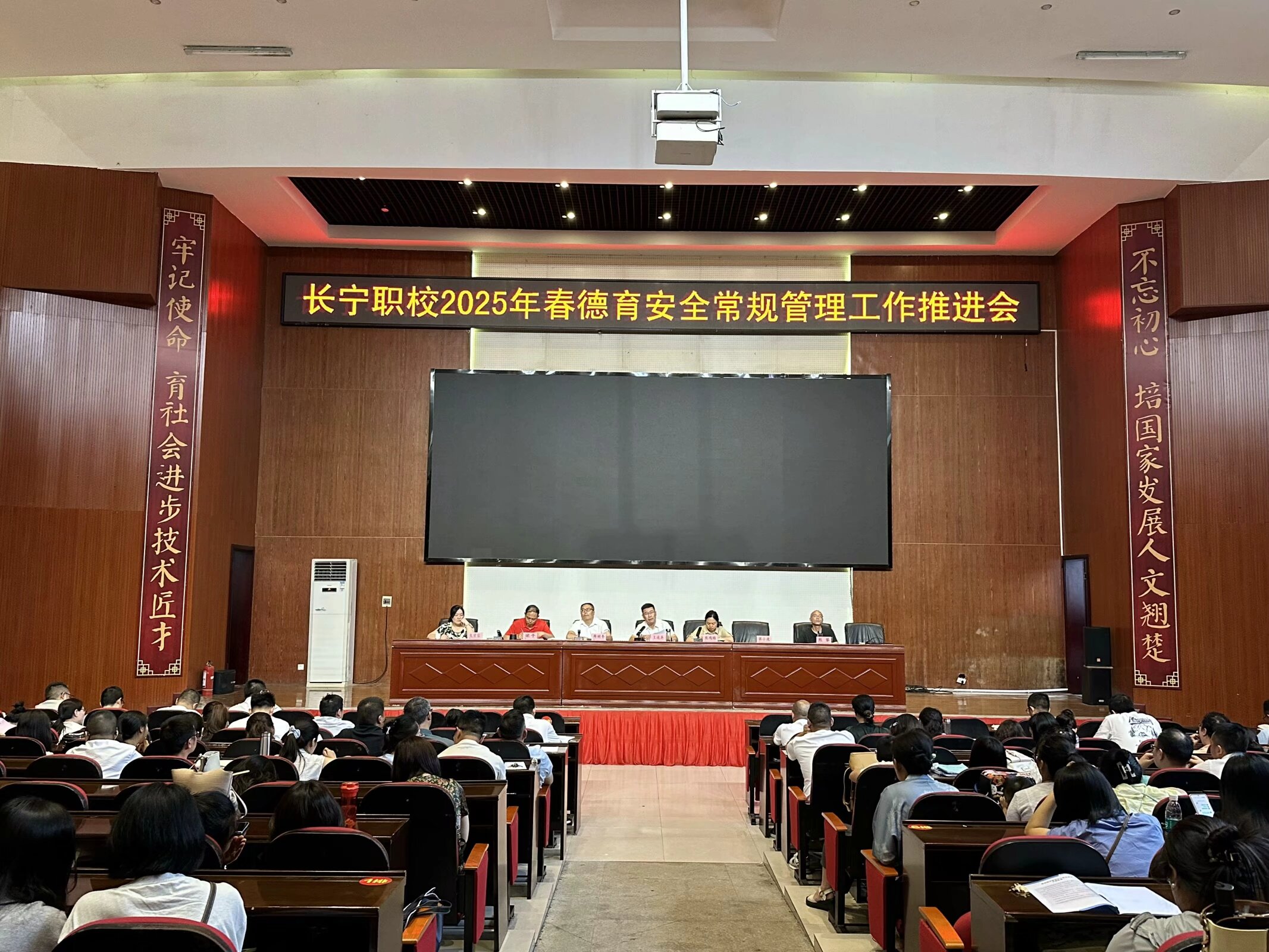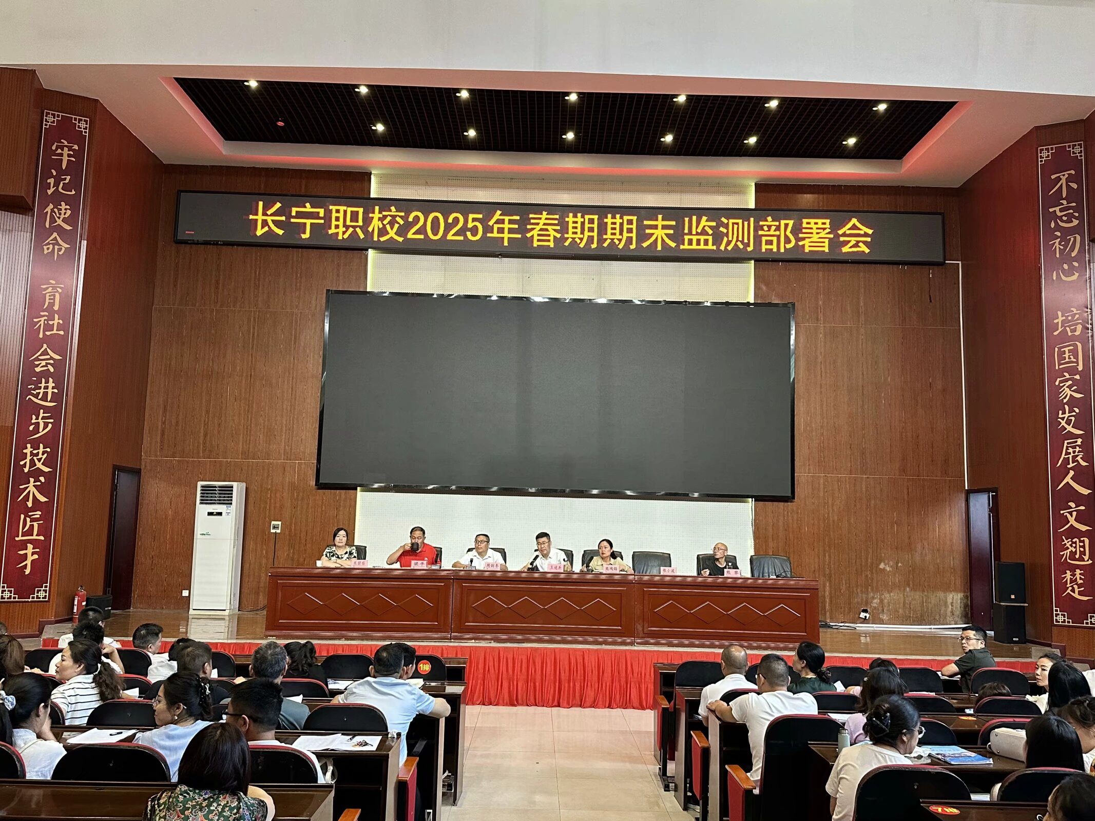 为强化教职工纪律意识、筑牢校园安全防线、统筹推进期末教学工作,6月9日,四川省长宁县职业技术学校在校本部集贤厅召开警示教育大会暨2025年春期期末监测部署会。学校领导班子成员及全体教职工参会,会议由党委副书记、校长王运兵主持。