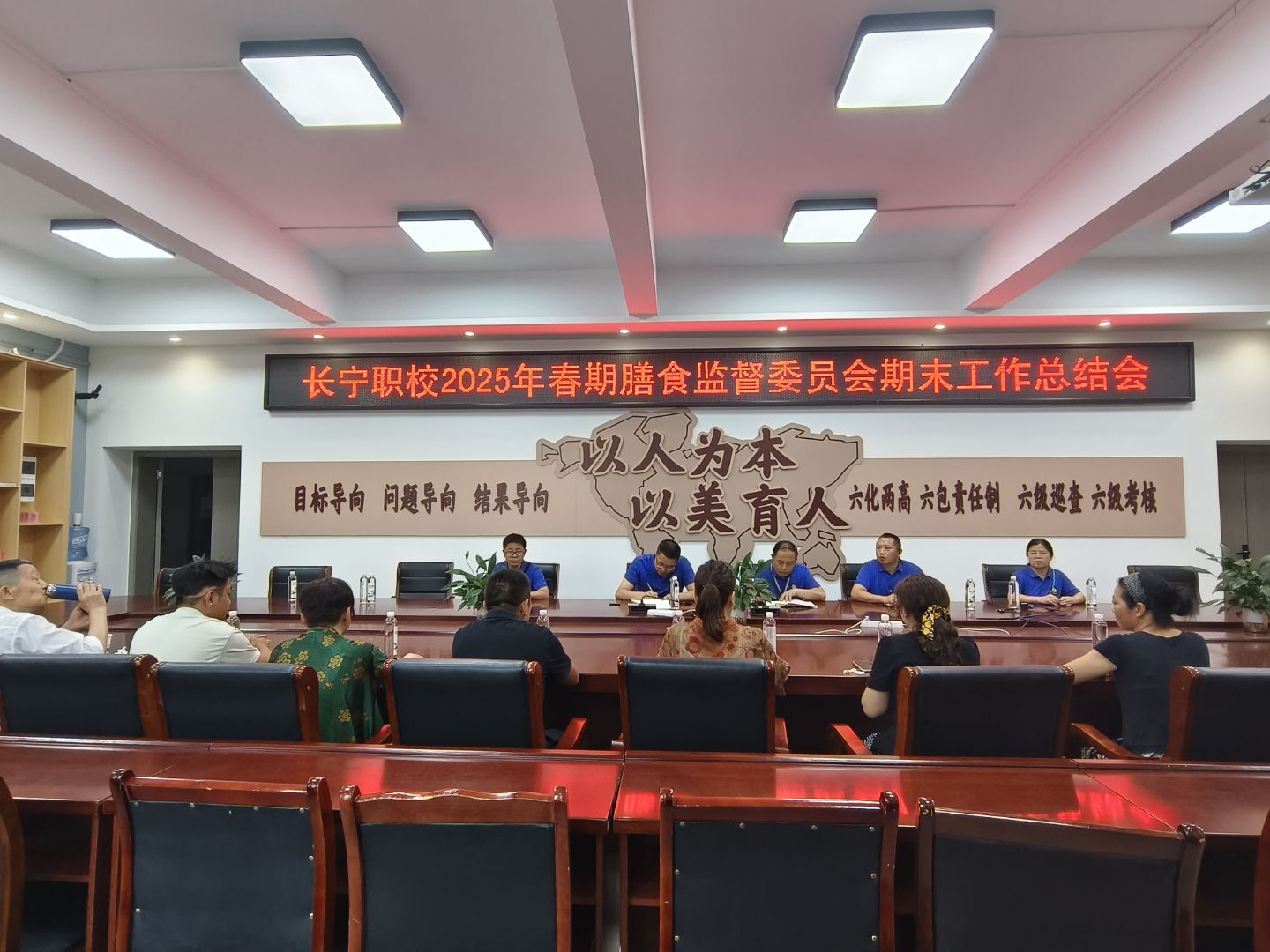 为进一步强化家校协同监督机制,总结本学期膳食监督工作成果,四川省长宁县职业技术学校于6月30日在校本部明德厅召开膳食监督家长委员会期末工作总结会。会议由安全办主任主持,德育安全副校长、食品安全总监梁平、安全办部分成员、食品安全管理员、膳食监督家长委员会代表、专业部管理人员参会。
