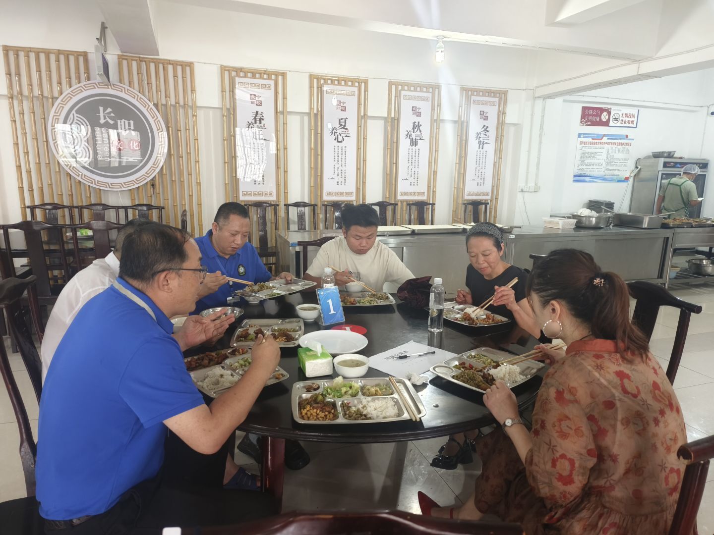 会后,全体参会人员实地参观食堂后厨,检查食材存储、加工流程及卫生状况并陪餐,现场提出优化建议。