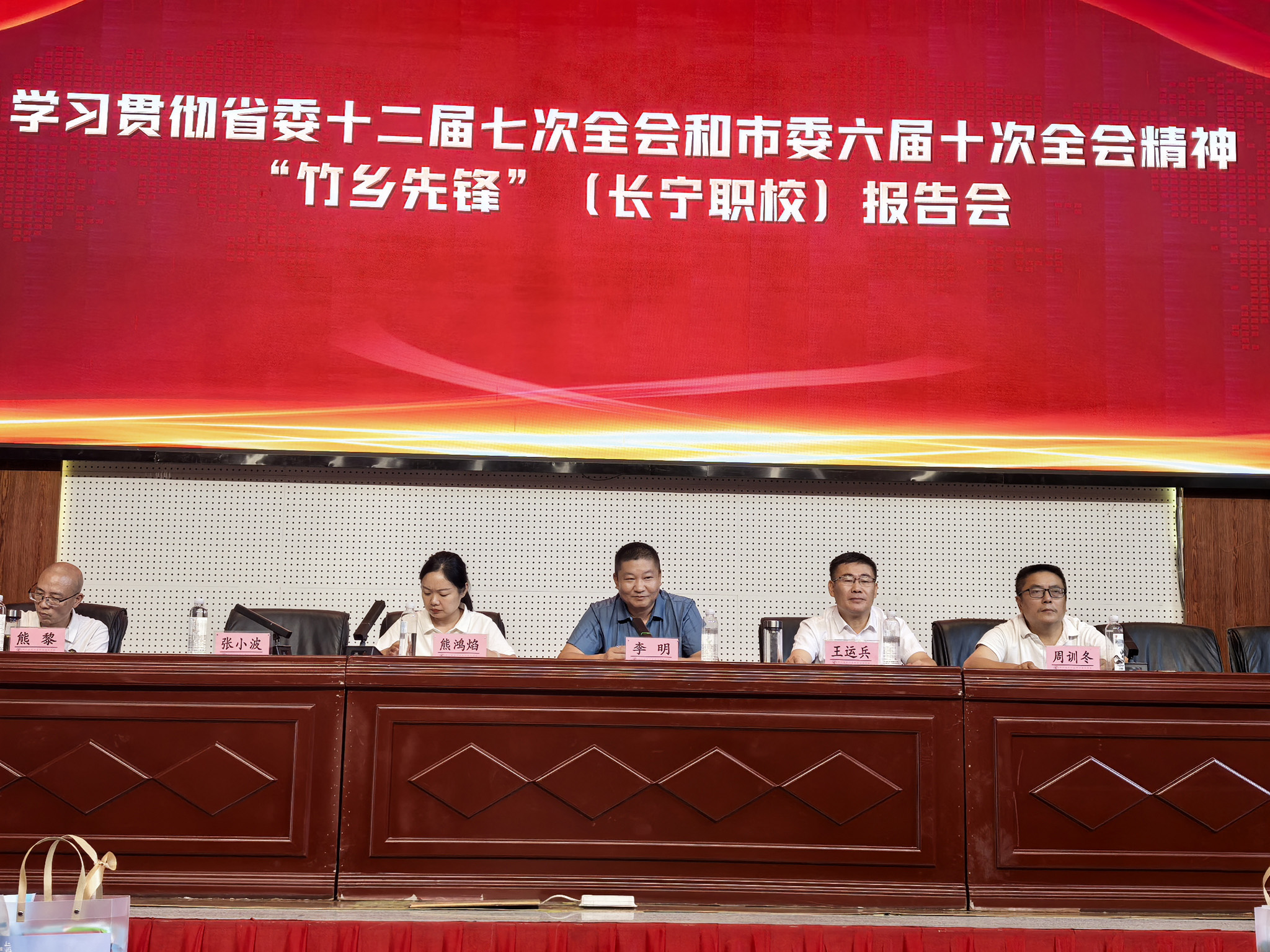 接着,王运兵校长总结2025年春季学期学校工作成效,对全体教职工团结协作、攻坚克难取得的成绩表示肯定与感谢。王运兵就2025年学校领导班子成员分工调整情况作说明,并宣读《四川省长宁县职业技术学校第七届工会委员会名单》,保障工会工作有序衔接。