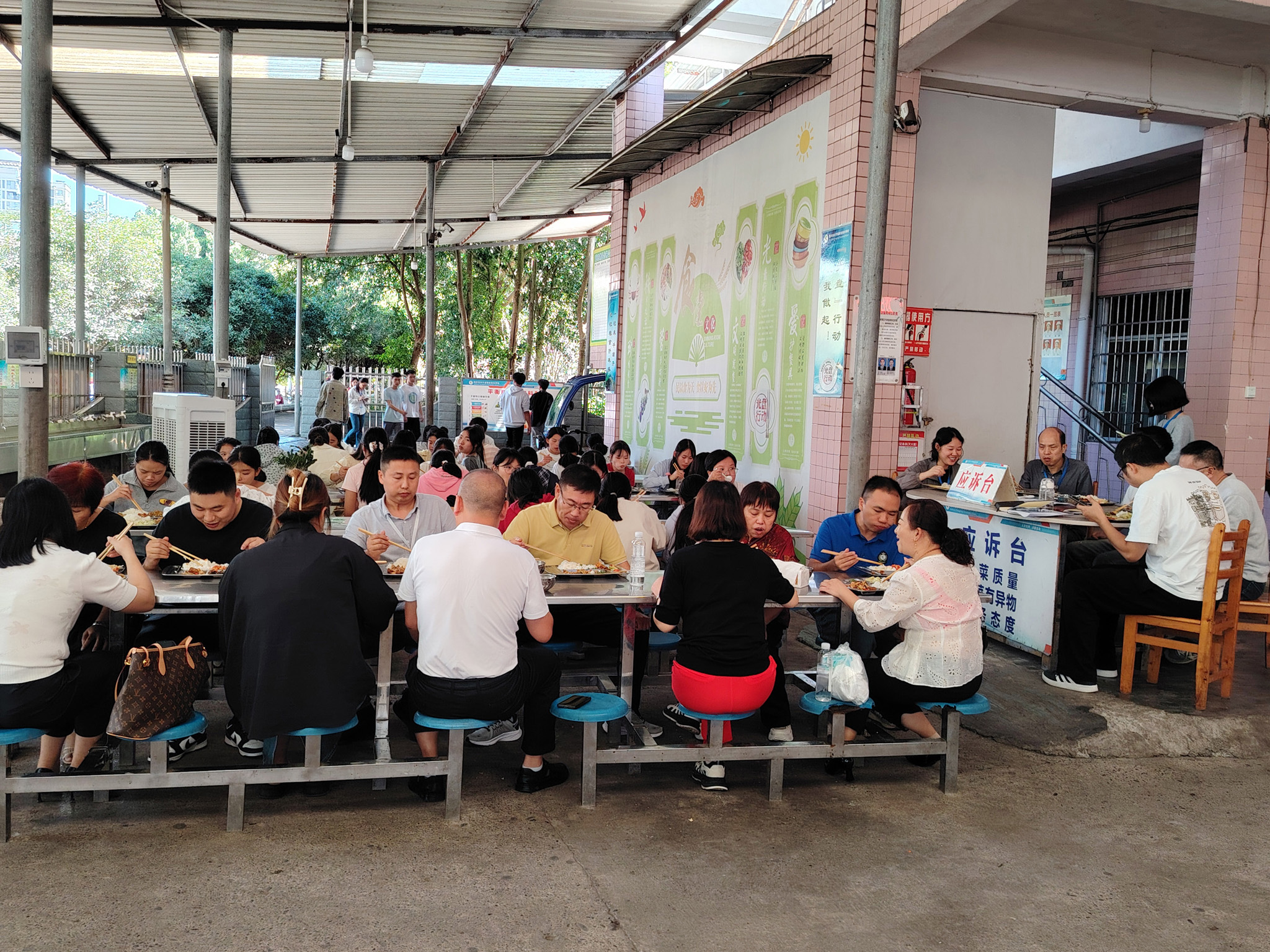 一是管理模式升级:食堂收回实行自主管理,成立以熊黎副校长为组长,冯维川、李永俊、周玲、江海为成员的专门工作小组,强化管理效能。二是惠民政策落地:生活服务部商品在建议零售价基础上再享9.5折优惠,坚持“不盈利、让学生获利”原则;严禁外卖入校,由政教处严格管控。三是监督机制细化:邀请家长委员会成员加入专属微信群,实行不定时入校监督制度;建立“值周教师+库管+食堂工作人员”每日联合验货机制,严把食材入口关。四是队伍建设从严:要求食堂工作组及工作人员严守纪律、廉洁自律,全面提升服务意识与专业素养。