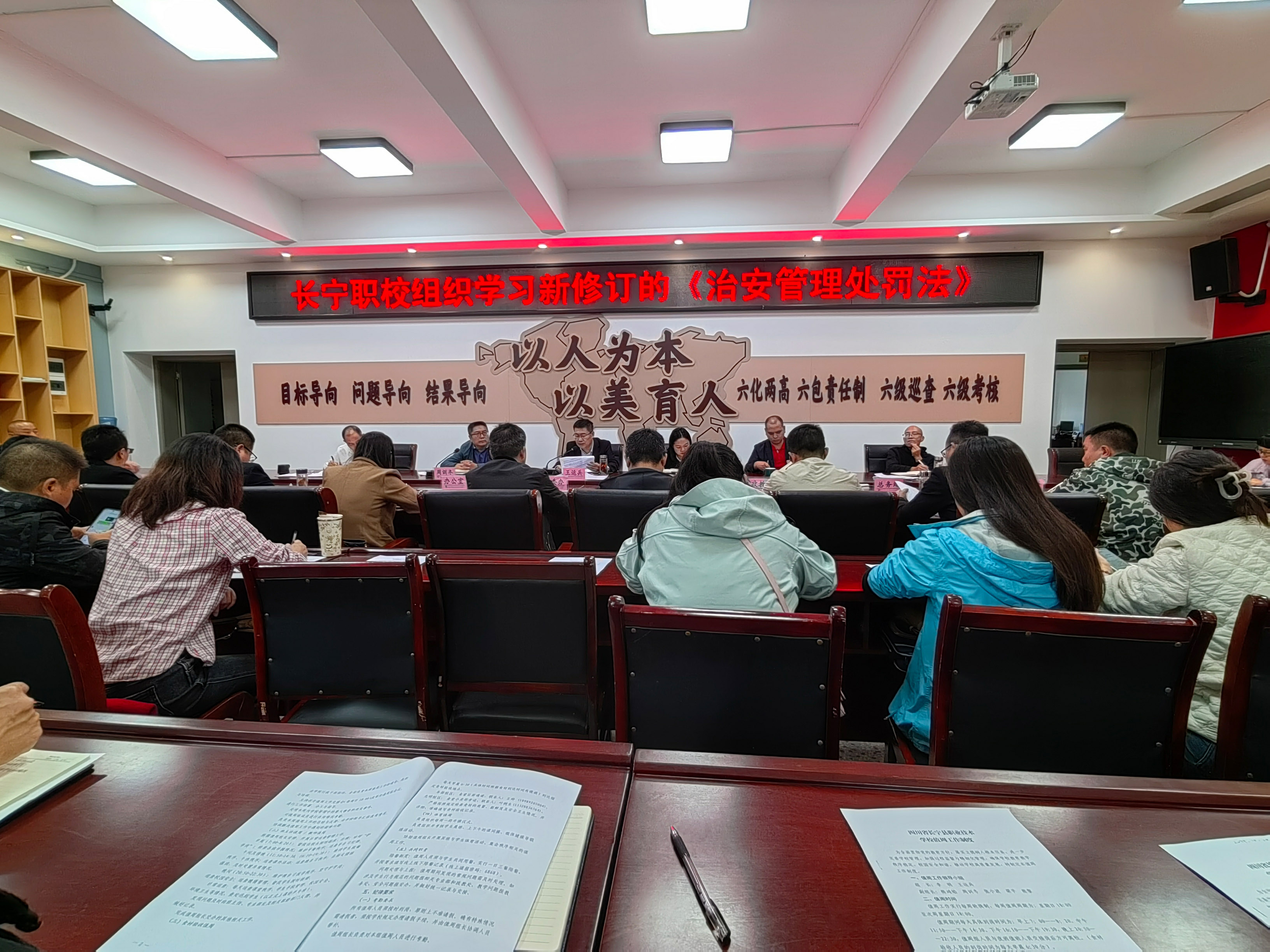 根据新修订的《治安管理处罚法》要求,四川省长宁县职业技术学校于第八个工作周组织全体教师开展专题学习暨班级主题班会活动,重点强化学校及教师在新形势下依法履职能力,扎实推进学生法治宣传教育工作。