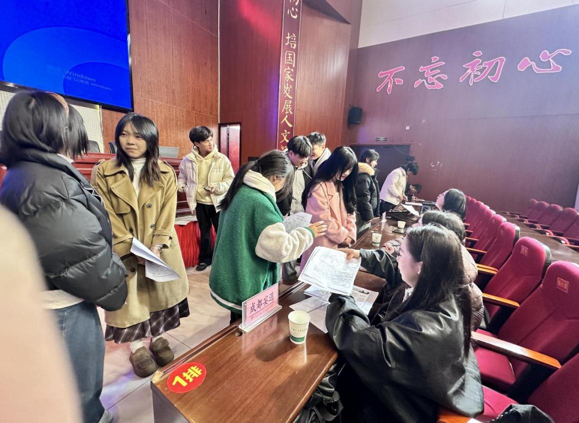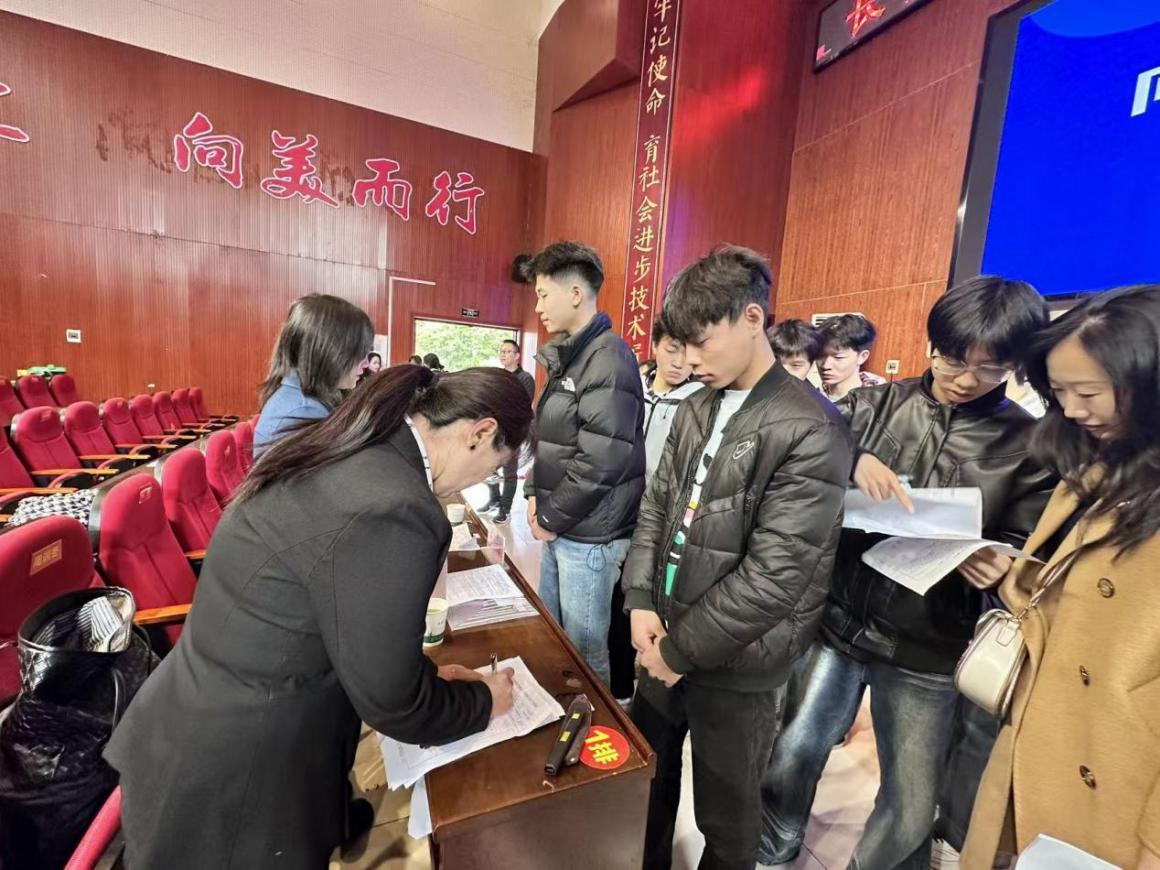 最后,举行学生与企业双选对接环节,学生现场投递简历并参加面试。双选会场秩序井然,既为学生提供多元选择空间,也为企业精准匹配实习岗位打下基础。