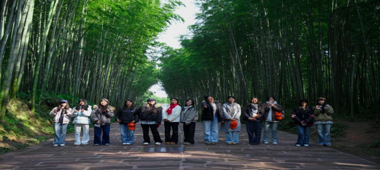 上午,研学队伍赴蜀南竹海开展实地考察,全体学员现场观察大熊猫生活习性,系统研究其与竹海生态的共生关系,深入理解宜宾“天人合一”生态理念;在翡翠长廊,学员们通过专业讲师对竹“脚踏实地、节节向上”品格的讲解,结合职业发展案例分析,切实增强了“正直、奋进”的思想意识;在竹文化博物馆,研学团队通过观摩485种竹子标本、竹簧竹编非遗展示及“全竹宴”成果展,全面掌握了竹产业综合价值,深刻体会到“匠心源于细节”的工艺理念。