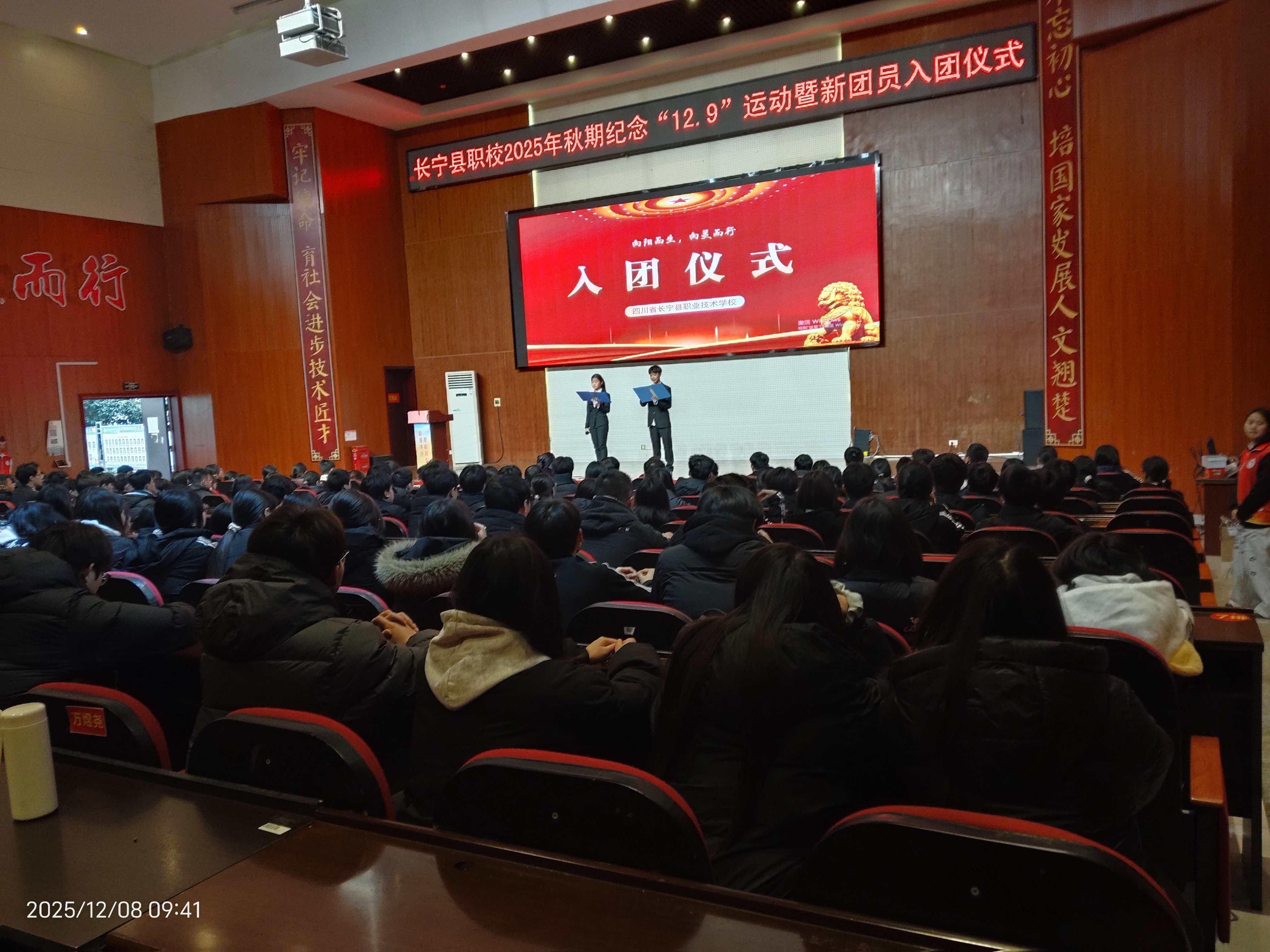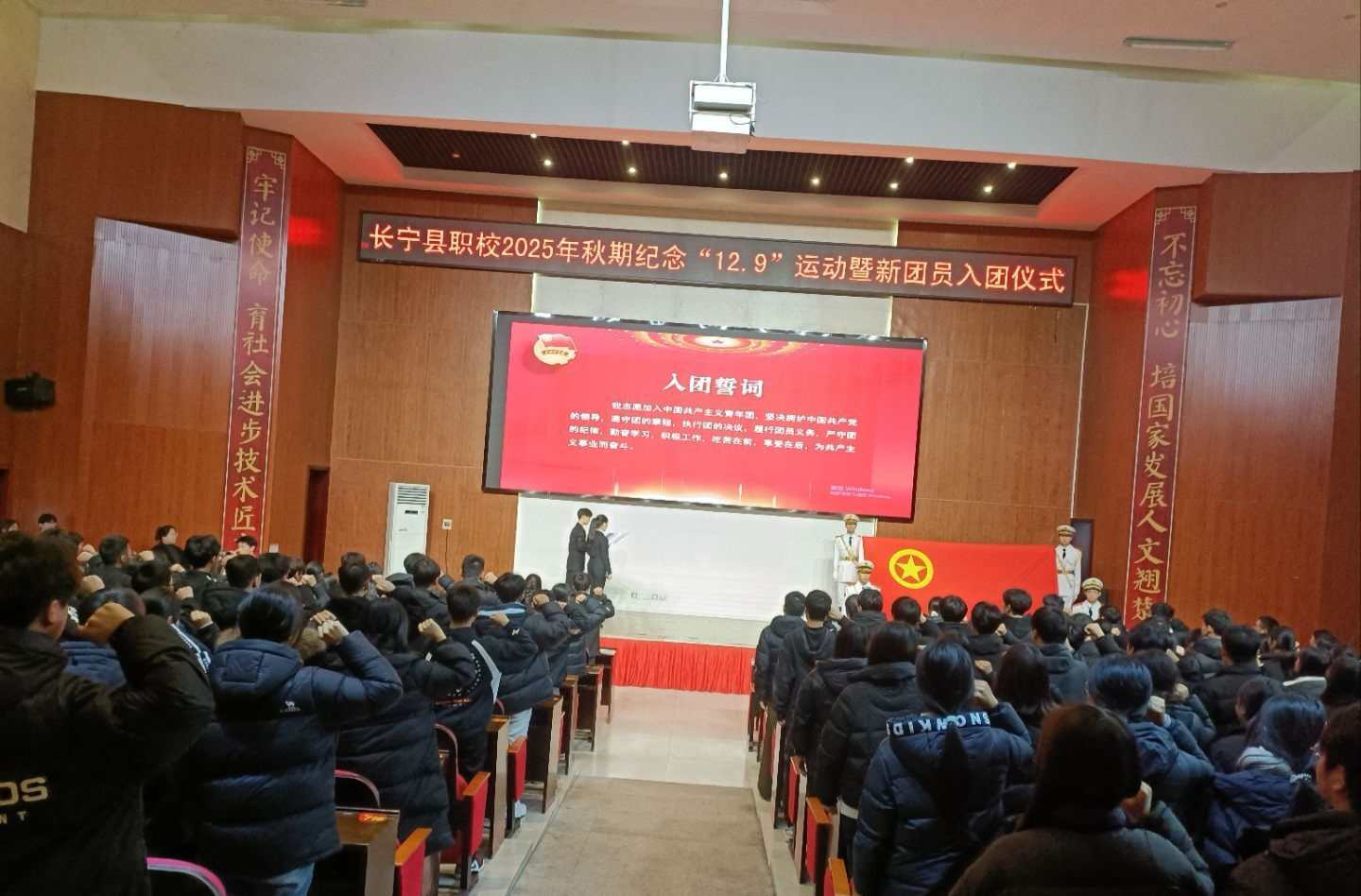 为深入贯彻落实共青团工作要求,进一步加强组织建设,凝聚青年力量,引导学生坚定理想信念,四川省长宁县职业技术学校于2025年12月8日在校本部集贤厅举行2025年秋期“12·9”运动纪念活动暨新团员入团宣誓仪式。