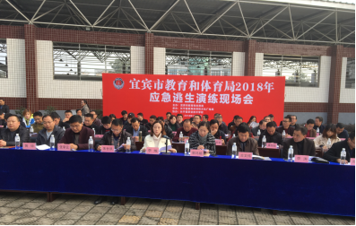 应急逃生疏散演练现场会首先在长宁县职业技术学校召开,市教体局安全科、各县(区)教育局(教育体育局、教体文广局、教育文广局)、临港经开区社会事务局、市属院校的分管领导和安办主任、长宁县各中小学、幼儿园校(园)长120余人参会。现场会就当地震发生时的紧急避险和灾情发生后的紧急疏散、医护救治等方面作了全方位演练。