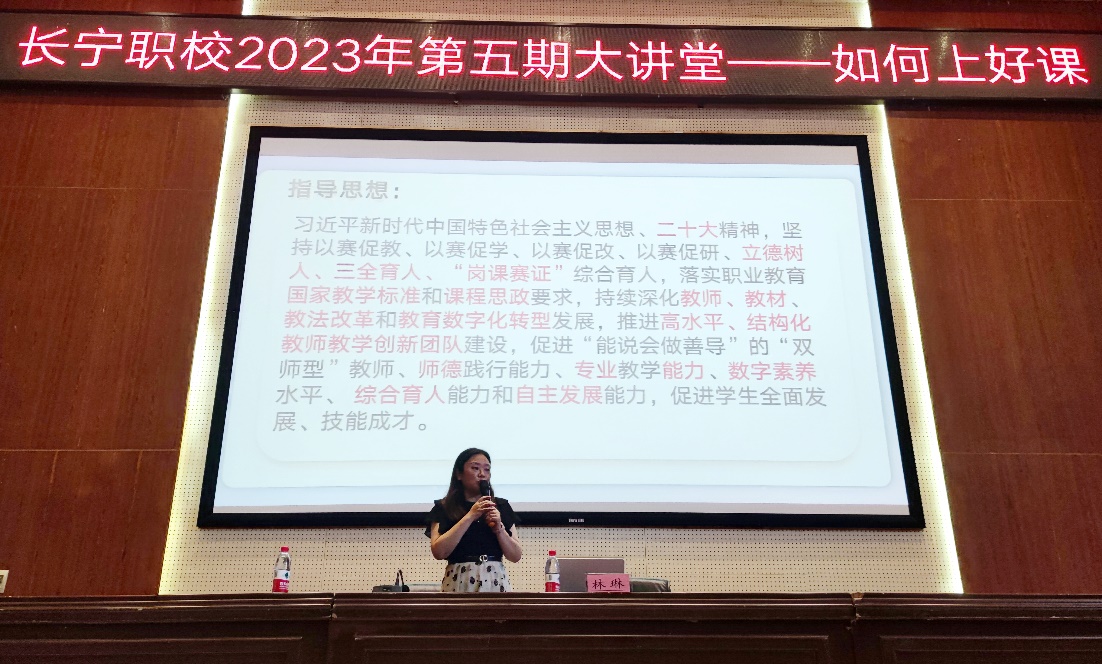 上午,林琳以开放式主题“如何上好课”展开中职学校教师教学能力大赛备赛的专题讲座。林教授深入剖析了大赛的指导思想,从如何熟悉专业与课程谈起、用亲身参与国赛的经验指导老师们怎样做好设计与实施、反思与改进。林教授指出,教师教学团队的协作是至关重要的,只有创新团队教师集体备课、协同教研,分工协作并进行模块化教学,形成各具特色的教学风格,才能不断提升教学质量效果。