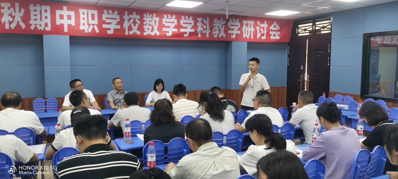 2023年9月13日上午,宜宾市2023年秋期中职学校数学学科教学研讨会在我校光明校区举办。参加本次数学学科研讨会与会人员有:原宜宾市教科所所长郭青初、长宁县教师研究与发展中心初中和高中研训室主任石世彬、学校副校长周训冬、宜宾市各中职学校数学教研组长和骨干教师、我校教科室成员、数学教师等。本次研讨会议由周训冬主持。