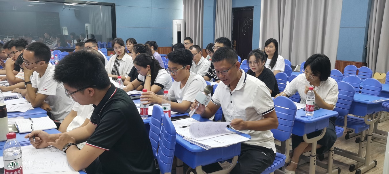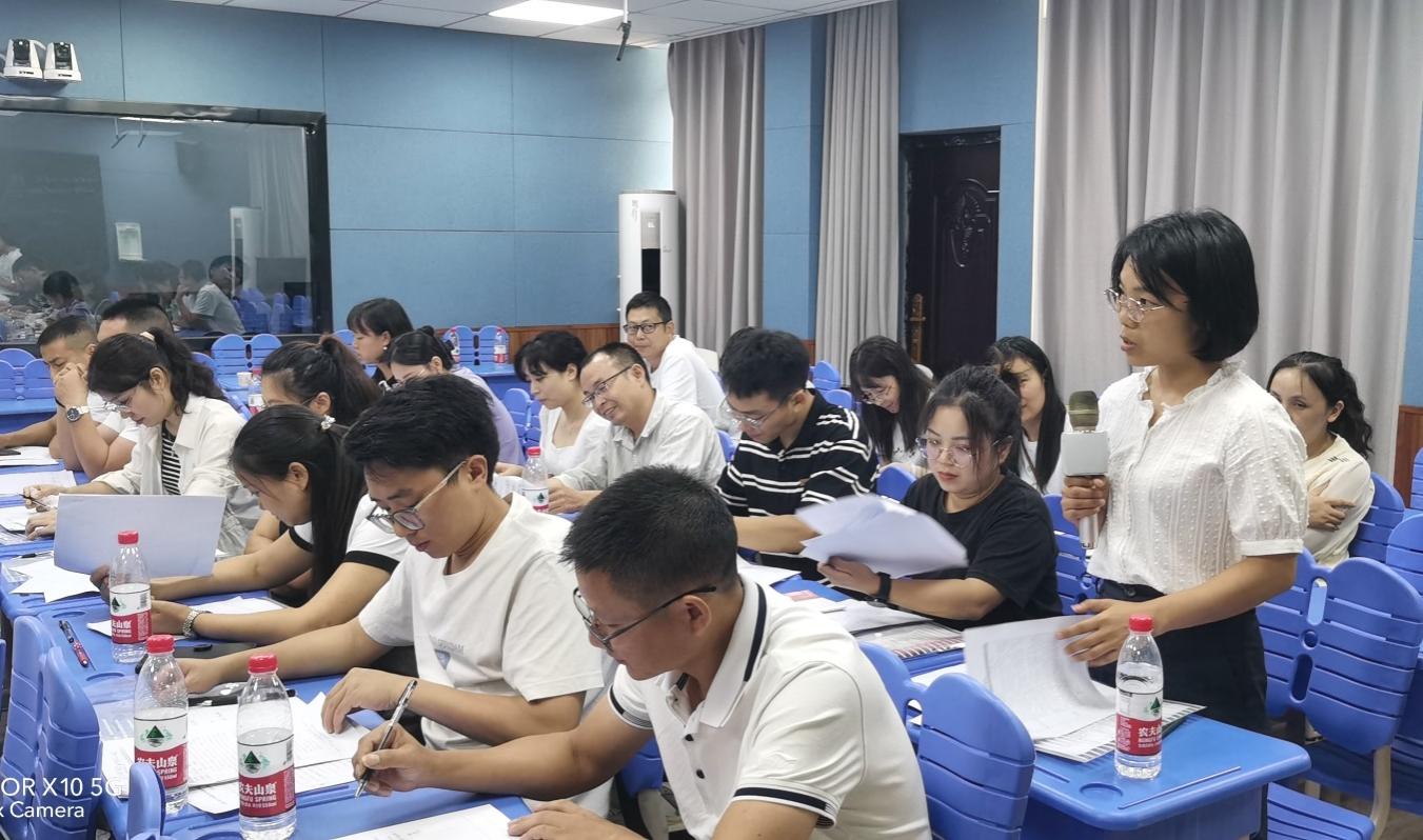 评课环节,周校长介绍了我校的发展与升学情况、数学学科活动开展情况等。随后,宜职校等参会学校教研组长、骨干教师对两节公开课的教学展示内容进行点评,分享了教案的写法,包括教学目标、学情分析、理解和结合考纲教学、重难点突出、信息技术手段的使用、课堂思政和课堂时间分配等经验和方法。