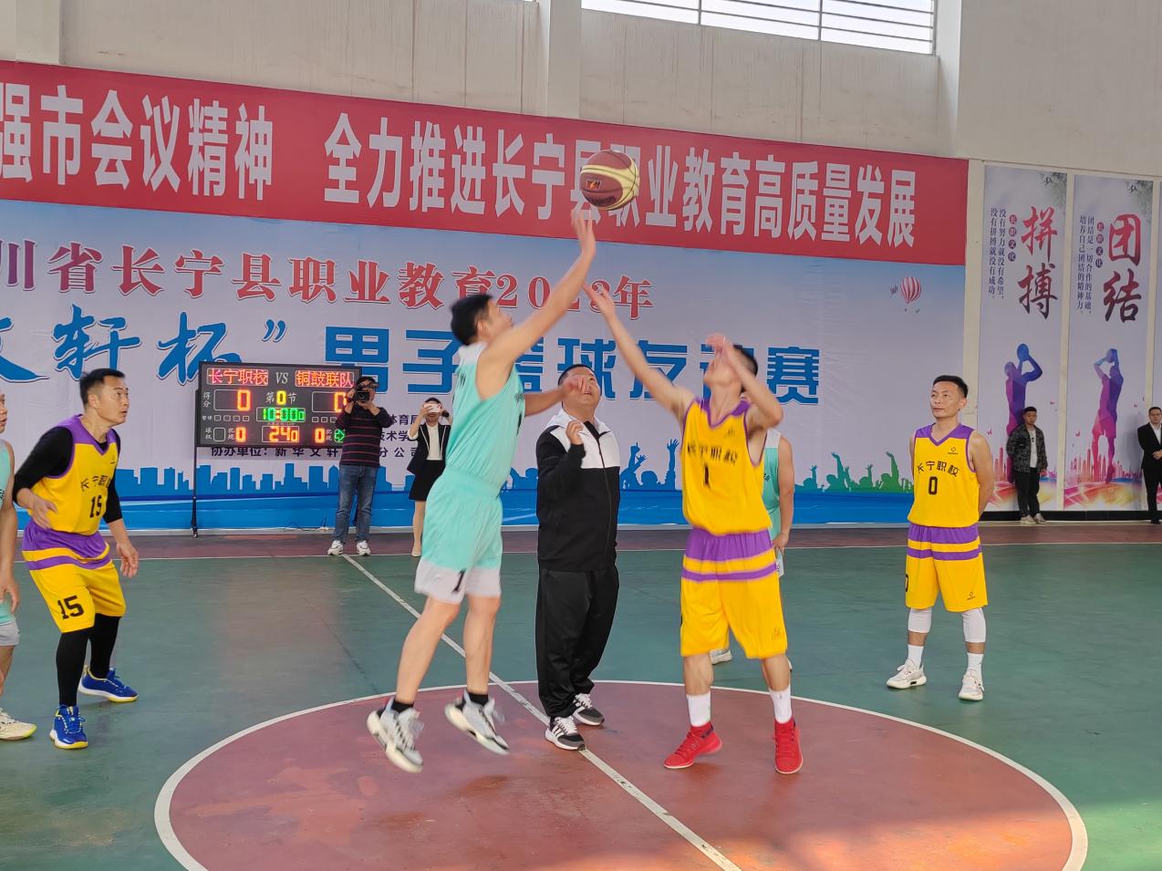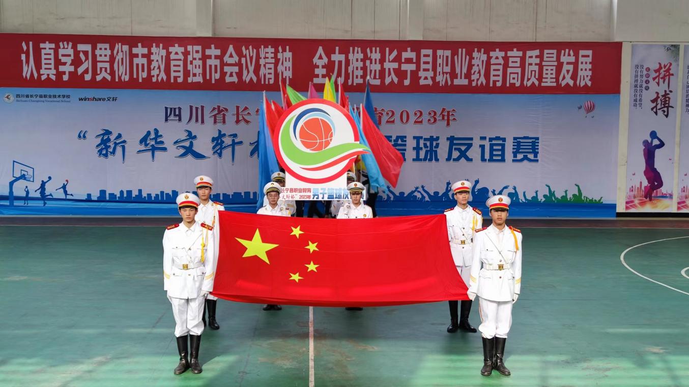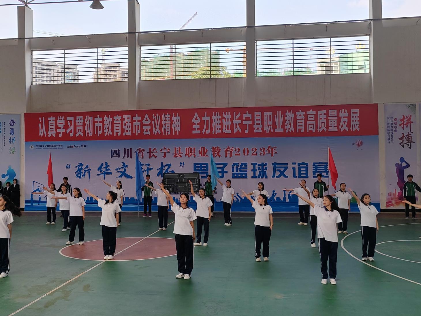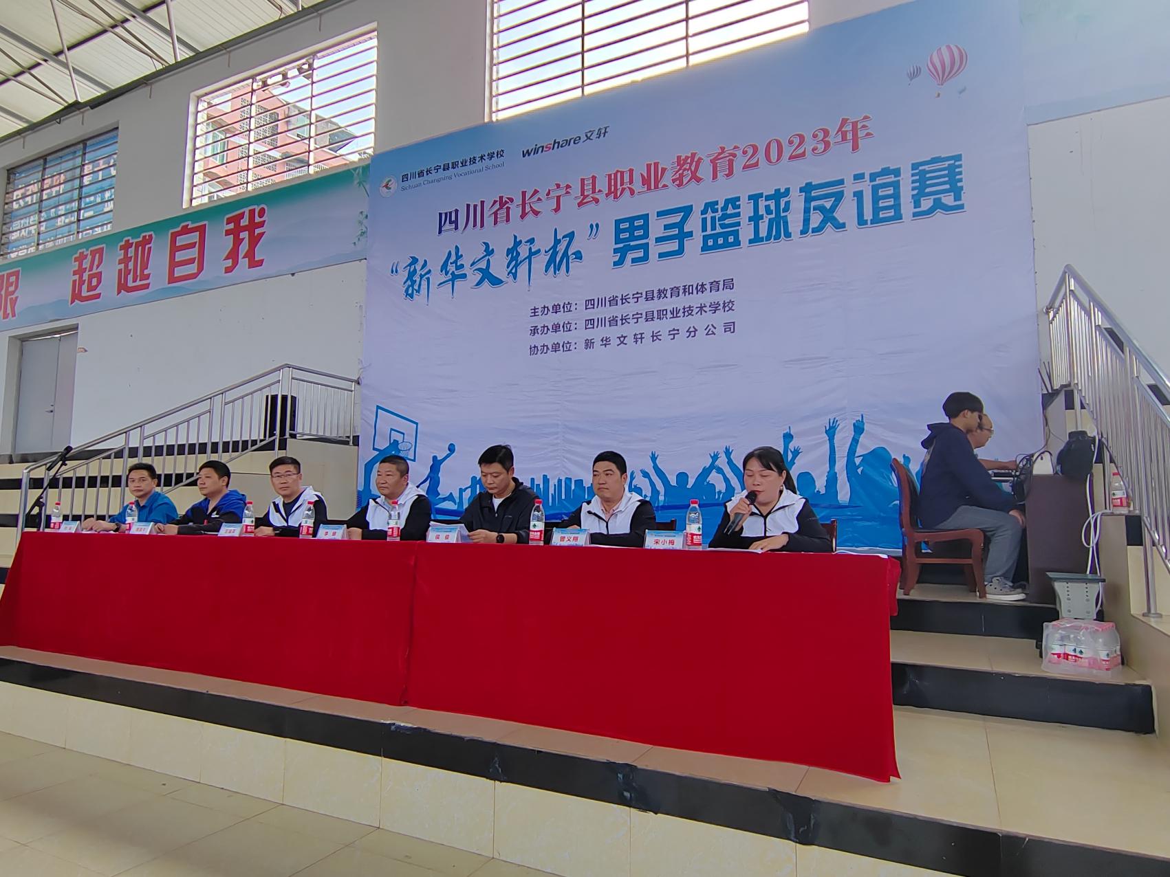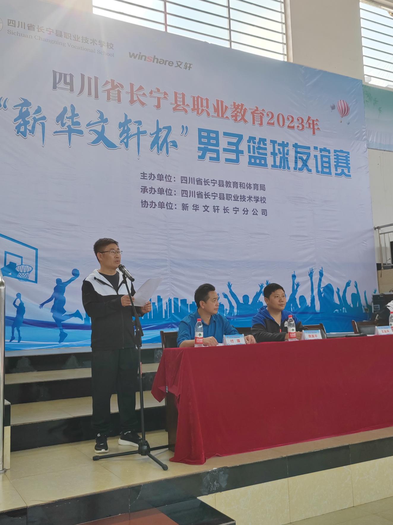四川省长宁县职业教育2023年 “新华文轩杯”男子篮球友谊赛在我校隆重举行开幕仪式