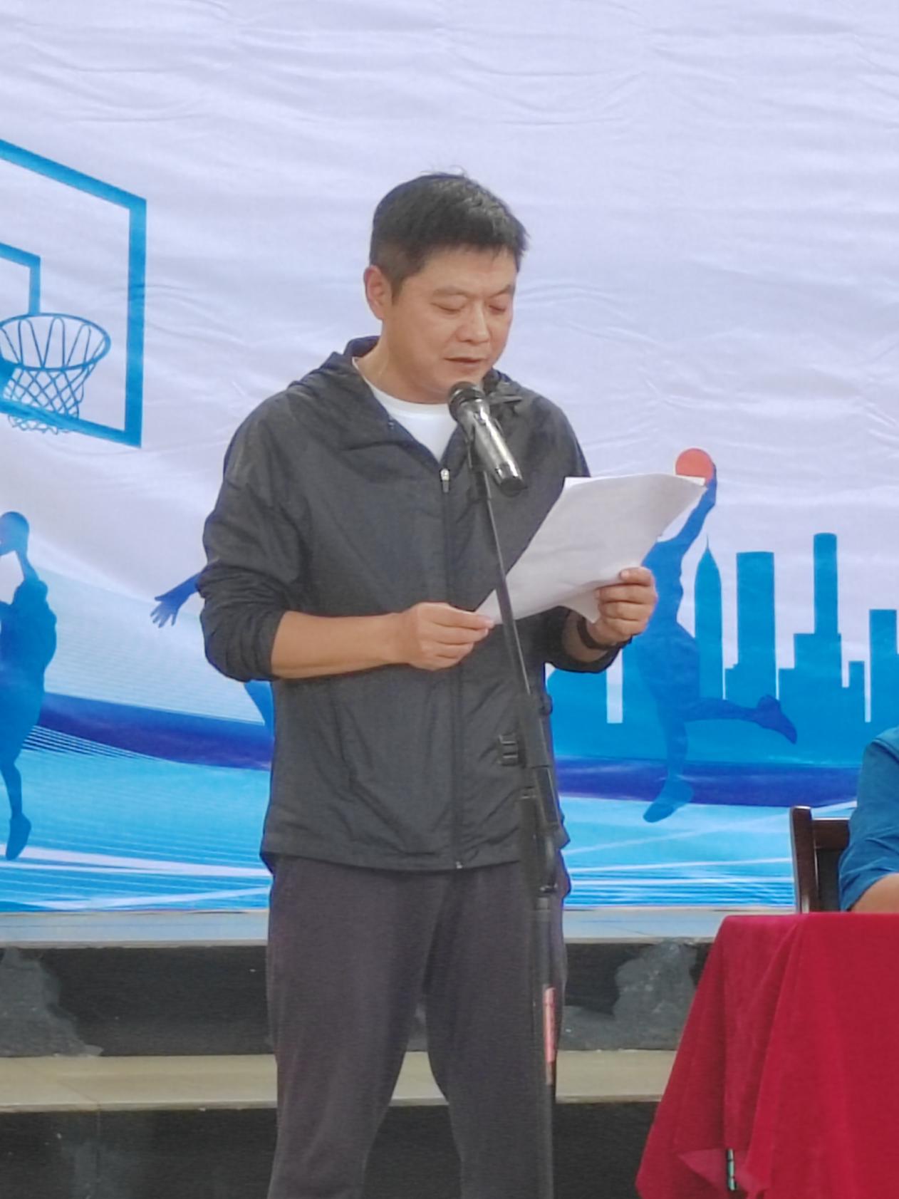 李明宣布四川省长宁县职业教育2023年“新华文轩杯”男子篮球友谊赛开幕。