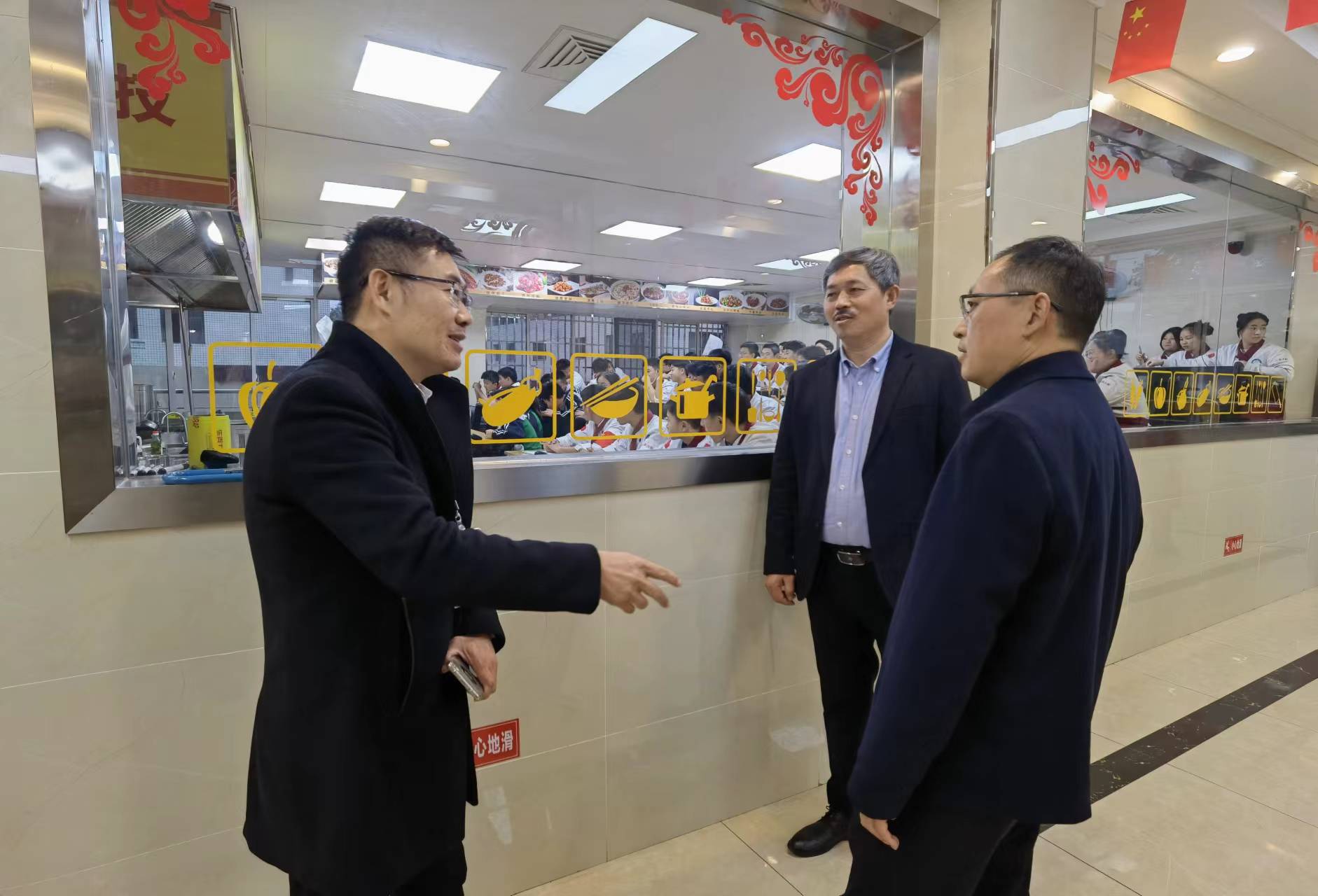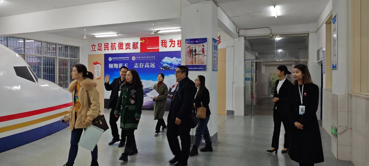 随后,严杰一行前往学校操场、航空实训中心、中餐烹饪实训中心、竹工艺展览厅、阳光驿站等,实地了解了课程开设情况和学校课程体系、教学六认真、学习五认真、实训教学、社团活动等。