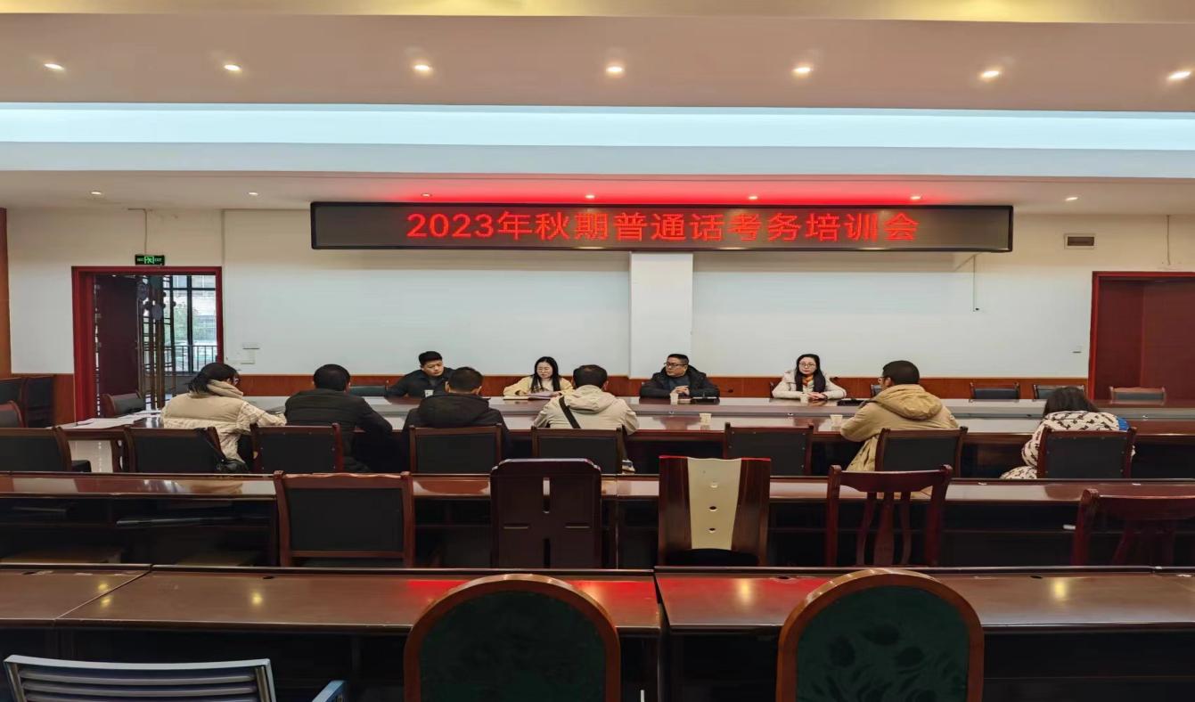 26日下午,在明达厅召开了考务会。宜宾市普通话测试中心老师陶国英在会上强调了考试流程及考试纪律,学校党委委员、副校长周训冬就规范考试和考务人员职责作要求。