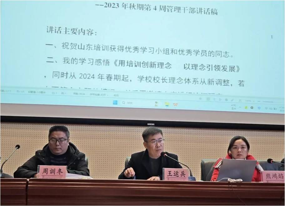 以终为始 奔赴未来 长宁职校2023年秋期第4次管理干部大会 暨山东培训总结汇报表扬会