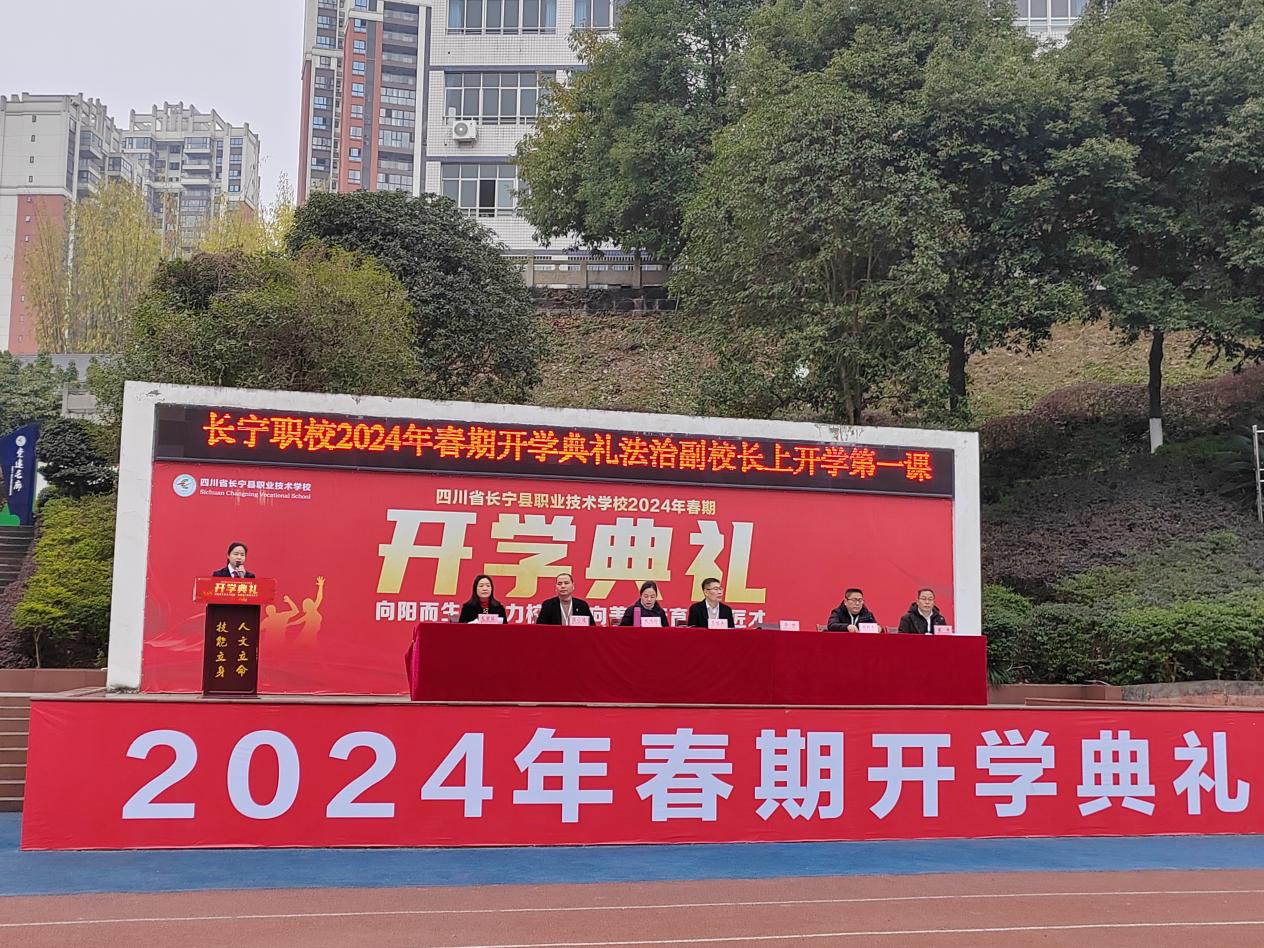 长宁职校举行“向阳而生 向美而行 2024年春期开学典礼” 暨开学第一课法治教育和应急疏散演练