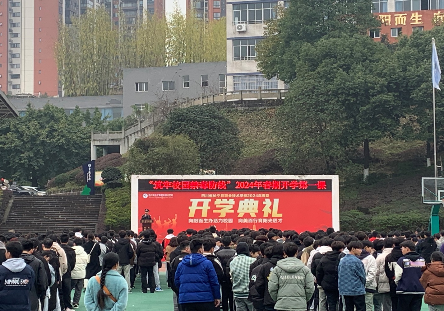 “筑牢校园禁毒防线” 四川省长宁县职校开展2024年春期开学禁毒第一课