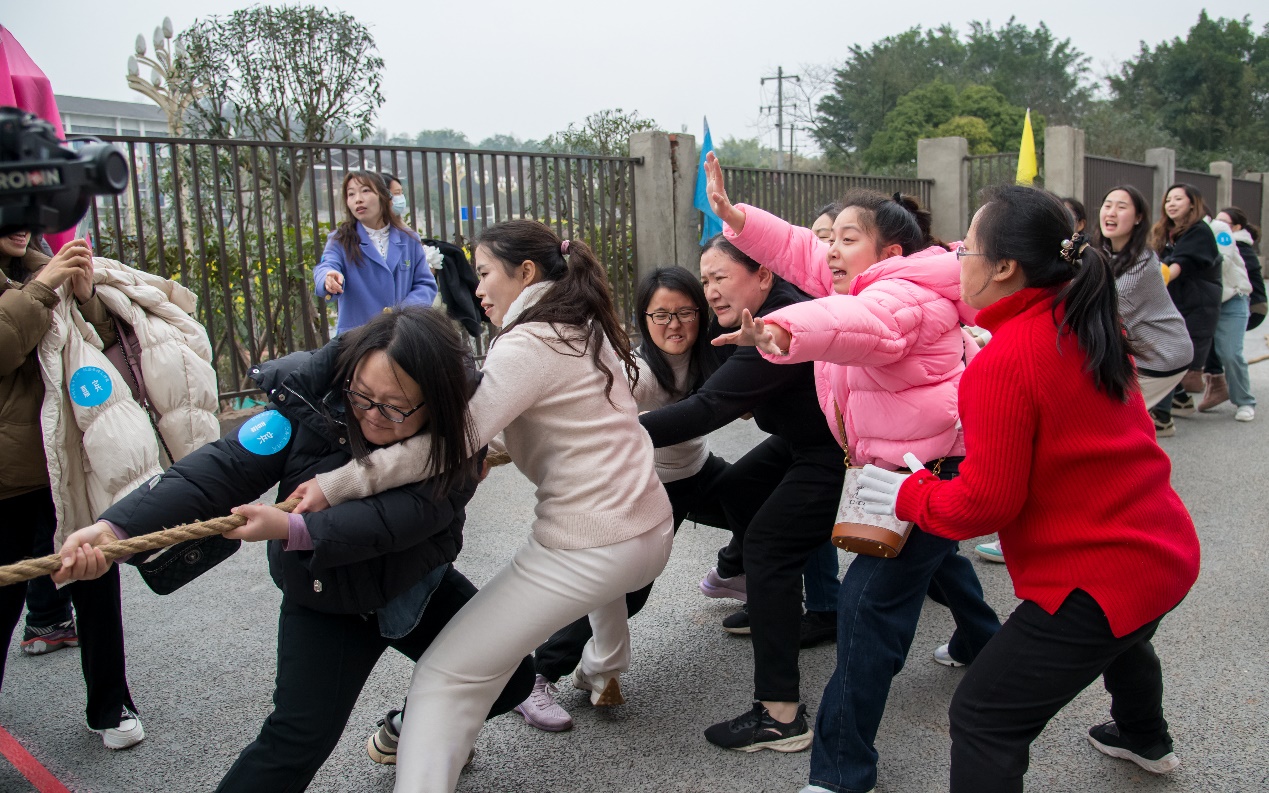 3月7日,我校联合宜宾竹海科技公司在丽雅·上游竹苑开展“巾帼英姿争上游 校企共情汇竹苑”,友谊拔河、原地转圈、运输面粉、寻觅红包一场场趣味活动令人应接不暇,丰富的礼品展现了国企的匠心,让人感受到“家”的温暖。