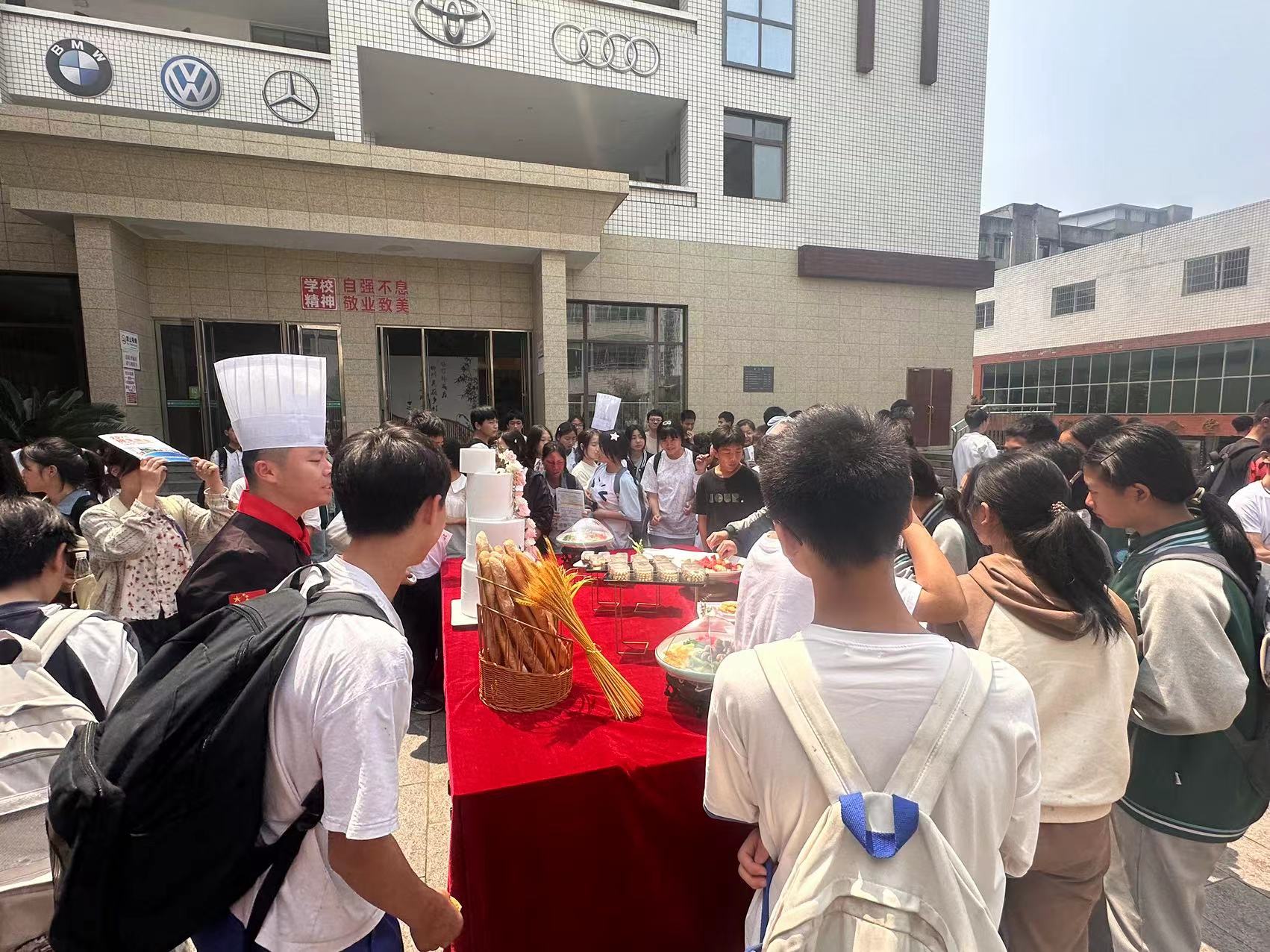徒步近3小时,竹海中学师生抵达长宁职校,为了让长途跋涉的师生稍作休整,长宁职校精心安排了午餐和矿泉水。午餐结束,宣讲会正式开始。