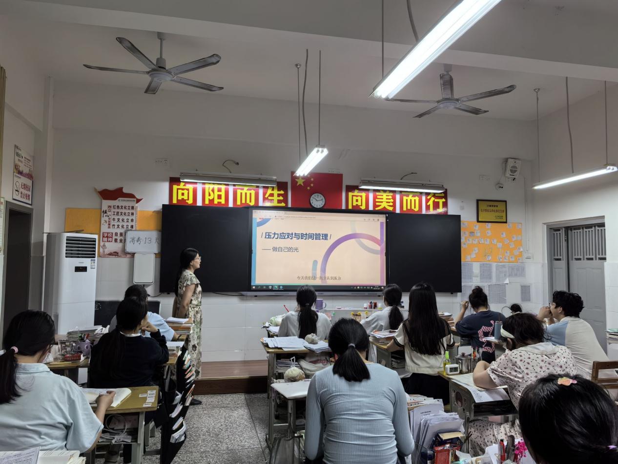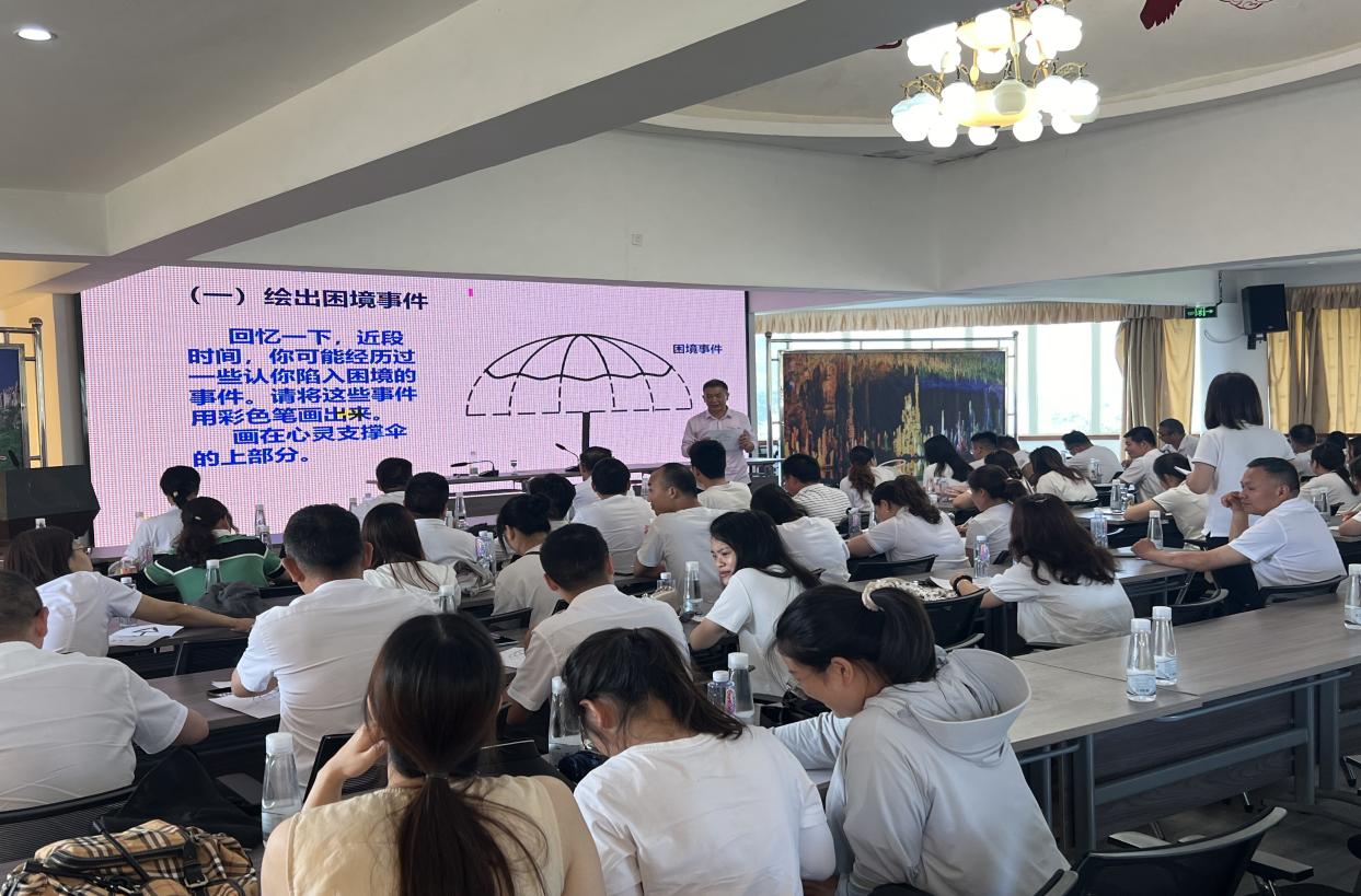 除此之外,为全面提升班主任心理健康教育管理能力,缓解班主任压力,助力学生身心健康全面发展。学校邀请到长宁县心理健康教育中心潘明剑老师为班主任及德育管理团队成员开展了心理释放团辅讲座。