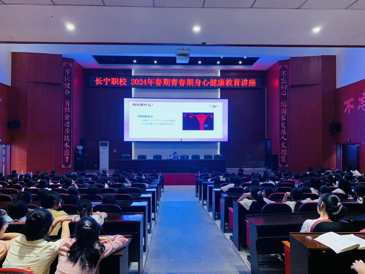 图为组织全校女生开展青春期身心健康教育讲座