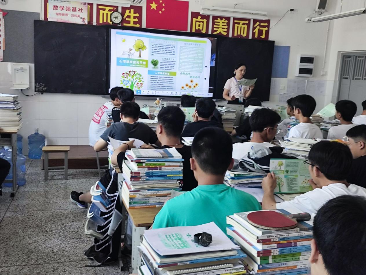 图为组织学生开展生命教育主题班会宣传心理知识