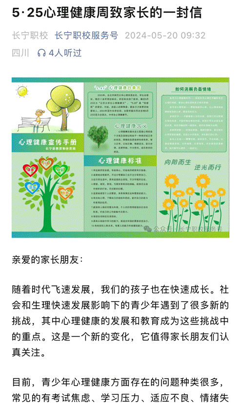 图为学校公众号向家长推送心理健康教育知识