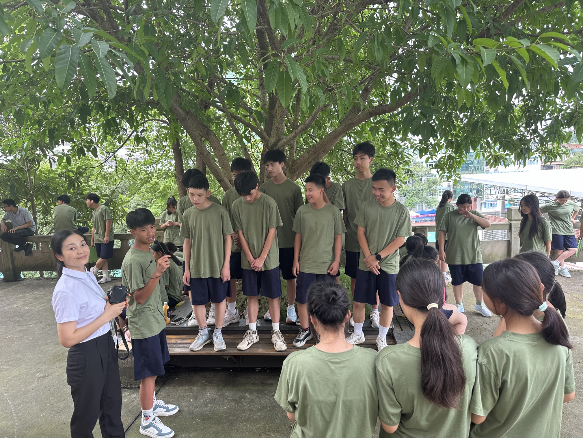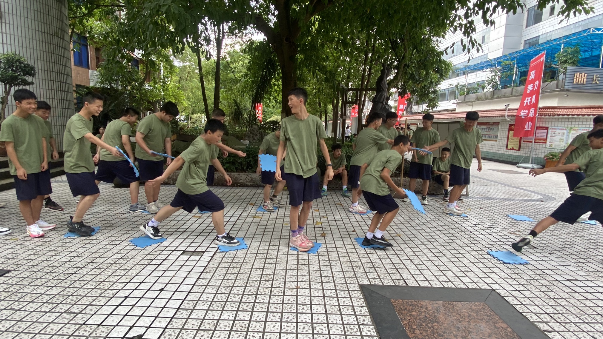 活动期间,班主任们参与其中,为同学们鼓劲、助威,随着拓展项目的顺利进行,同学们逐渐由陌生到熟悉、由沉默不语到敞开心扉、由避而不谈到献计献策,热情不断高涨,合作越来越默契。同学们组建团队、创立团队口号、集思广益、总结经验。积极参与各项拓展项目,不但展现了青春活力、阳光向上的精神面貌,又激发了潜能、不断提升自信,同学们欢声笑语、开心快乐,形成了一道亮丽的风景线。