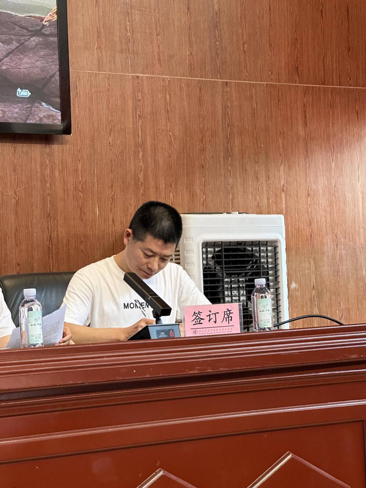 长宁职校机械部专业部长罗从学作为教师代表签订《师德师风承诺书》。