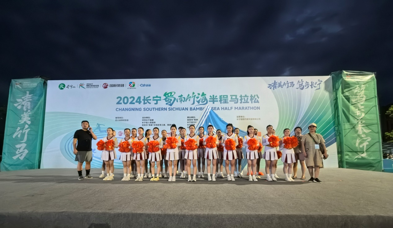 9月22日,2024长宁蜀南竹海半程马拉松起跑仪式在长宁高铁站站前广场拉开帷幕。四川省长宁县职业技术学校啦啦队精彩亮相长宁“竹马”开幕式表演。