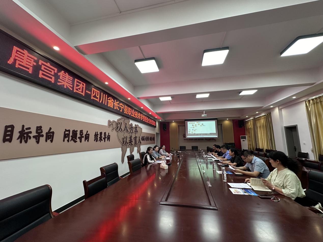 2024年9月26日上午,四川省长宁县职业技术学校与唐宫餐饮集团在校本部明德厅成功举办了校企合作洽谈会议。此次会议旨在进一步深化双方合作,共同探索人才培养新模式,促进教育与产业的有效对接。