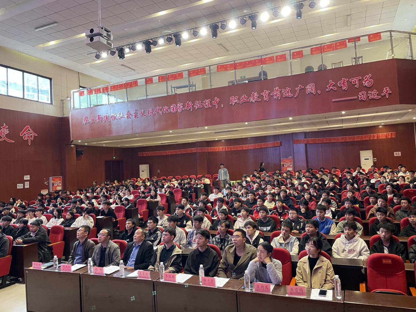 讲座在学校集贤厅开展。共青团长宁县委出书记陈鸿杰、长宁县职校党委副书记、校长王运兵;长宁县职校副校长梁平;长宁镇党委副书记、长宁职校团委副书记刘光星特邀席本次讲座。齐国庆(团中央选调生)、王雪梅(省民开中心选调生)、王韵茜(省民宗委选调生)、王震洲(宜宾市农村局选调生)、杨元昊(应急部选调生)作为嘉宾参加本次讲座。