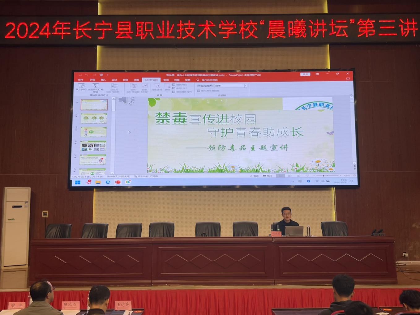 为增强青少年预防毒品意识,营造无毒校园环境,培养学生责任意识,提高学生“识毒、防毒、拒毒”的能力,10月31日,长宁职校开展以“禁毒宣传进校园,守护青春助成长”为主题的“晨曦讲坛”第三讲。