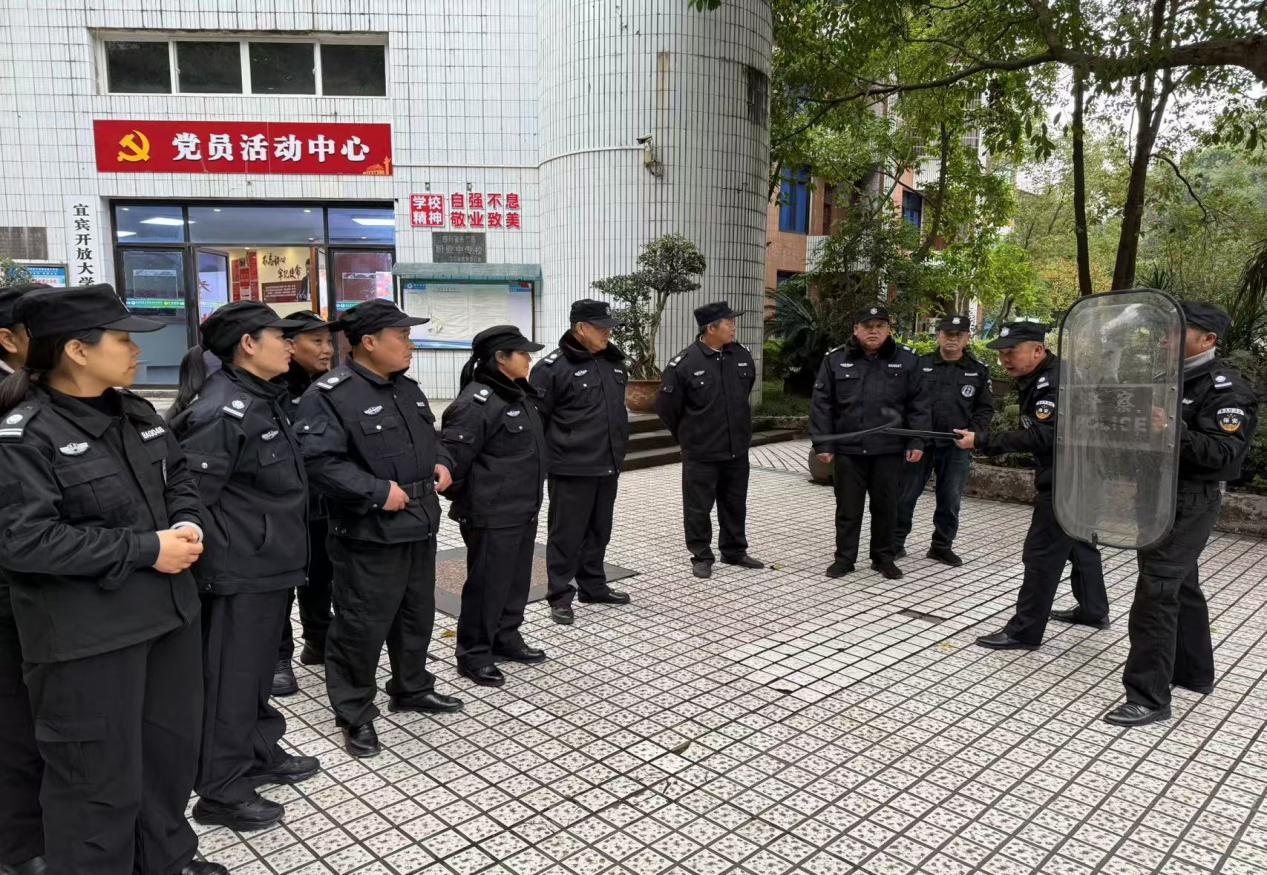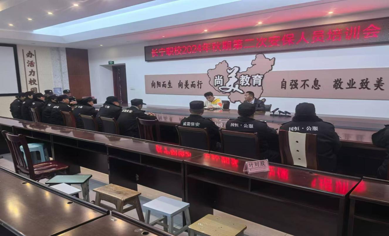 针对近期发生的两起突发安全事件,为了进一步加强我校安保建设和管理,使校园安保工作做到更好更细,长宁职校于11月19日开展了2024秋期第二次安保人员培训会暨反恐防暴演练。