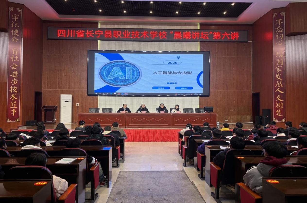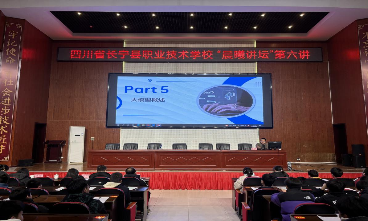 为教育引导广大青少年紧跟时代步伐,了解前沿科技信息,关注法制政策动态,1月4日四川省长宁县职业技术学校在本部校区集贤厅开展了以“人工智能与大模型”为主题的“晨曦讲坛”第六讲。